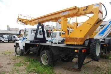 Максимальный подъем до 14 метров над землей. Грузоподъемность 200кг. Автомобиль подъедет в трудно доступные места.
