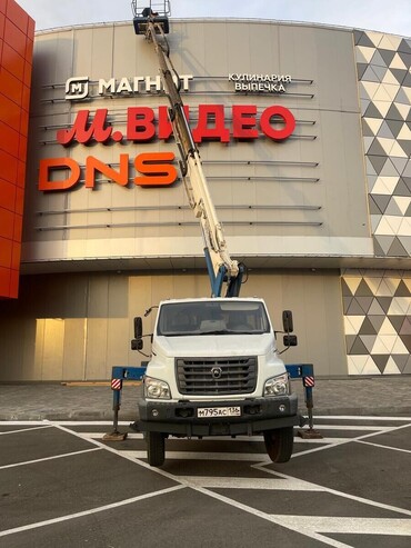 Максимальный подъем до 14 метров над землей. Грузоподъемность 200кг. Автомобиль подъедет в трудно доступные места.