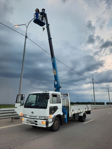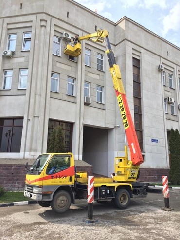 Максимальный подъем до 14 метров над землей. Грузоподъемность 200кг. Автомобиль подъедет в трудно доступные места.