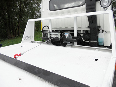 В стандартном исполнении, в комплектацию эвакуатора включены: электрическая лебедка с оцинкованным тросом, комплект самозатяжных ремней для фиксации а/м, инструментальный ящик, лампы освещения рабочей площадки, проблесковый маячок (желтый или оранжевый), колесные упоры.