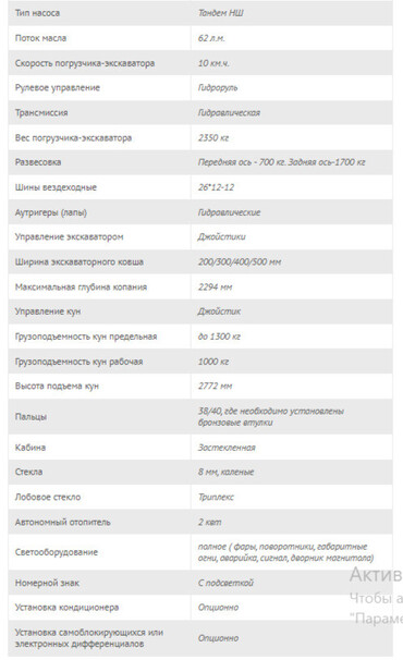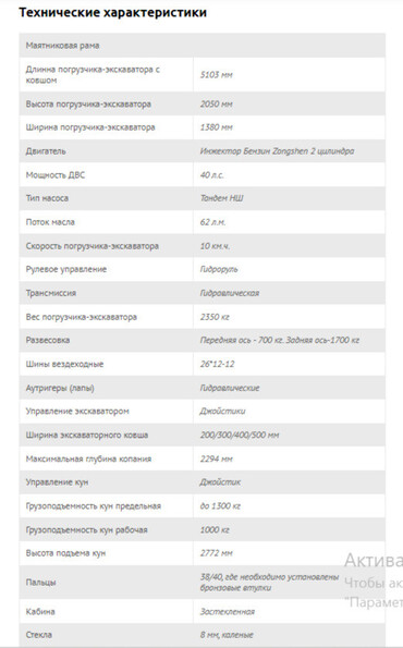 - Высота до шарнира соединения ковша 3080мм