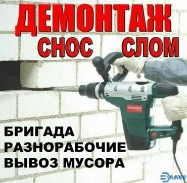 Выполняем все виды демонтажных работ!Приедем в самое кратчайшее время,и выполним за вас всю работу быстро,и качественно!Работаем с любым электро инструментом,есть свой весь необходимый в наличии.Ребята порядочные,ответственные,трудолюбивые,без вредных привычек.По оплате всегда договоримся.Звоните в любое время!